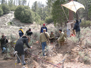 Nathanael Troupe (Stills), Laura Neri (Sound), Michaela von Schweinitz (1st AD), Gavin Kelly (DP), Willard Motomura (Director), Mike Dunn (Military Advisor), Greg Hashimoto (Kazuo), Garret Sato (Richard), Matthew Barbor (Key Grip) and Chris Torres (Grip) on location in Chilao Recreational Area, Angeles National Forest/USA |