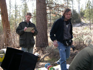 Nathanael Troupe (2nd AC) and Kevin Sasser (1st AC) on location in Chilao Recreational Area, Angeles National Forest/USA.