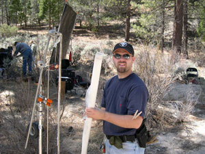 Matthew Barbor (Key Grip) on location in Chilao Recreational Area, Angeles National Forest/USA.