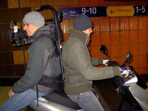 Jens Meiners (camera) and Paul Pieck (grip) guerilla shooting 'Annabel', on set January 2006